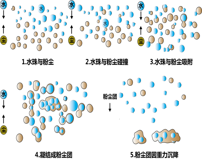 干霧抑塵原理基于歐美科學(xué)家的研究發(fā)現(xiàn):“水霧顆粒與塵埃顆粒大小相近時(shí)吸附、過(guò)濾、凝結(jié)的機(jī)率”,分段獨(dú)立式干霧降塵系統(tǒng)具有很好的抑塵能力,亦被稱(chēng)之為——粉塵終結(jié)者。